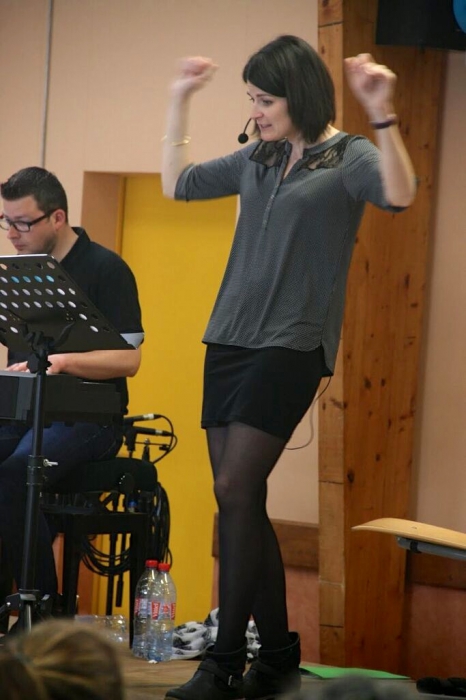 C’est un week-end chantant au féminin avec Marie Belz et Elodie Grandmaire à la direction, deux filles pétillantes et complices, qui ont donné des ailes à cette chorale éphémère, mais ô combien souriante, attentive et énergique. Au piano, Christophe Pennel, un formidable accompagnateur qui sait aussi faire preuve d’humour (eh oui, pendant quelques minutes, samedi soir, il a troqué son piano contre un micro pour diriger les choristes amusés…).